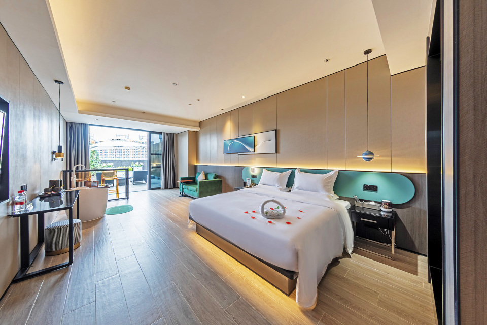 Located on Jiefangzhuang Road in Baiyun District, Guangzhou, the hotel is located in the core area of Baiyun Design Capital of Guangzhou, only 500m away from Huangbian station of Metro Line 2, adjacent to Baiyun Mountain Scenic Spot, Guangdong Institute of Foreign Studies and trade, ANHUAYI, Baiyun International Convention Center, Yellowstone , Guangdong Stadium, Wanda Plaza, Green Yunduhui, Baiyun Hui, Baiyun District People's Hospital, Yunmen, Baiyun Shangcheng, Hunter's Club, Tongtai No. 1 golf course, the location is superior and the traffic is convenient. The hotel's stylish and intimate room facilities provide guests with a relaxed and comfortable stay experience. The rooms are decorated with a modern feel and a panoramic balcony with a magnificent view of the city. BR & Gt The hotel also has an open-air lazy balcony, open-air breakfast buffet, laundry room, gym, archery room, robot, intelligent voice electrical guest control system and other industry first features to meet the needs of different guests. In addition to leisure time, guests can also stroll around the city, such as Canton Tower, the highly acclaimed provincial museum, the Architectural Guangzhou Opera House, the elegant and tranquil Yuexiu Park, and enjoy the cultural scenery of Guangzhou.